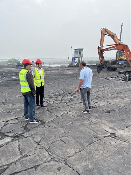 圖為:淮河物流事業(yè)部總經(jīng)理徐新懷在舜龍碼頭檢查工作,對節(jié)日期間堅(jiān)守崗位的業(yè)務(wù)員周忠平表示慰問,并提出工作要求。