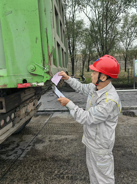 圖為:郭慶賀在鵬源碼頭核對車輛鉛封,嚴(yán)把煤炭數(shù)質(zhì)量關(guān)。
